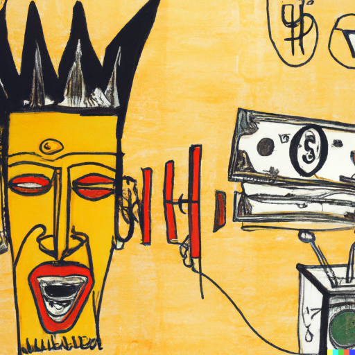 A human did not paint the picture above. DALL-E created it. I helped the AI to create it by inputting the information, “Basquiat painting of money and voice.” Jean-Michel Basquiat was a Brooklyn-born artist of Haitian and Puerto Rican descent famous for his neo-expressionist paintings. I used it to illustrate an essay I wrote on political inequality.