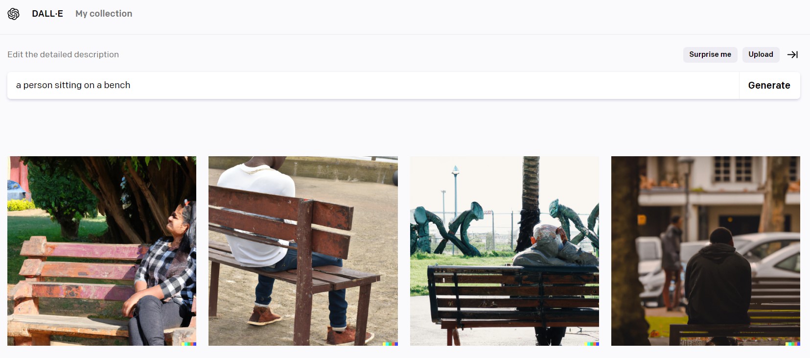 Text-to-image AI is built on millions and millions of images that it scraped from the web. It can picture well-known things, such as a person sitting on a bench. However, it struggles with abstract sociological concepts. We explored this a bit in a previous post, but not with a comparison.