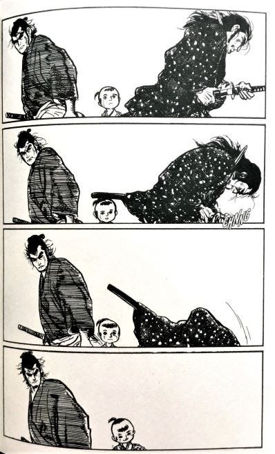 Lone Wolf & Cub is a masculinist work. It taps into the desires of men for honor and power. It satisfies, for a time, the desire for violence.