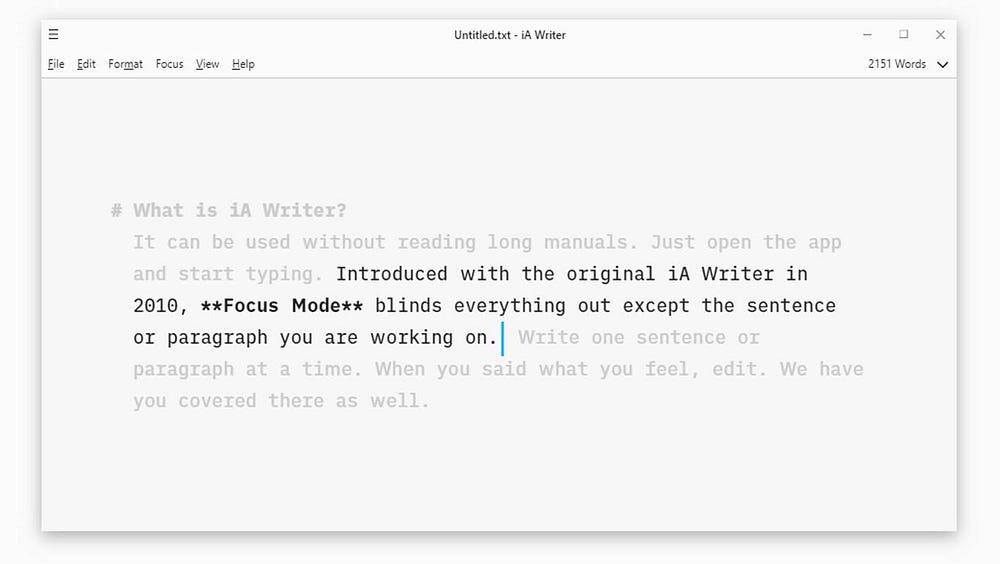 Mr. Lucas writes that it is “a minimalist word processor designed by the Swiss-Japanese firm Information Architects… The main feature of iA Writer is not having many features. The program is, essentially, a white rectangle, where the user can do little else but type in a custom monospaced font.”